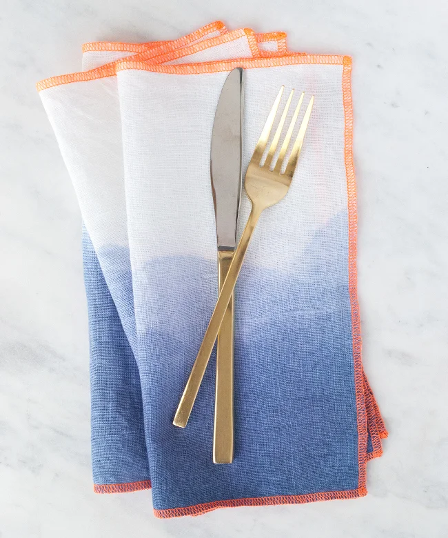 Blue Neon Orange Linen Dinner Napkin / Limited Edition